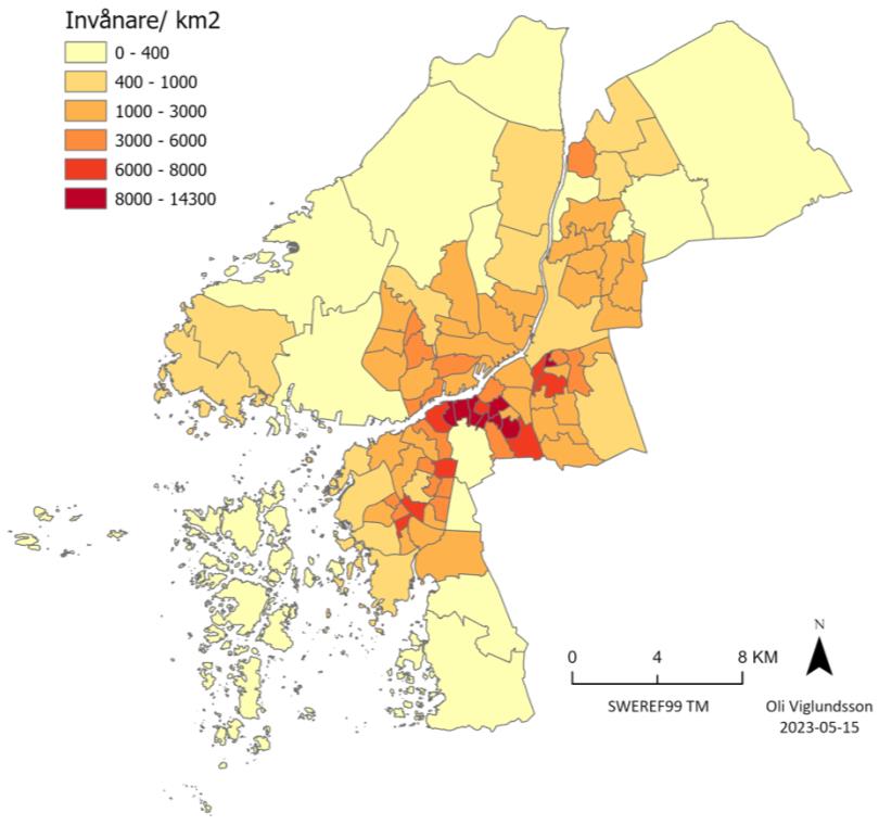 It is primarily important to understand the composition of the population in the various primary areas in order to proceed and comprehend the results of the other analyses. As can be seen in the map of population, primary areas in the Center have the largest population, but areas like Billdal in the Southwest and other primary areas, which are large in area, also have a relatively high population.