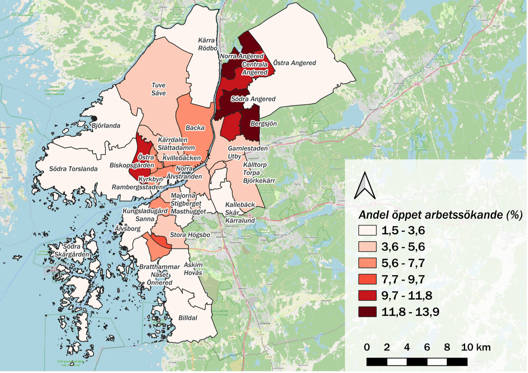 Unemployment Rate Map: This map shows the percentage of openly unemployed individuals across different districts in Gothenburg.